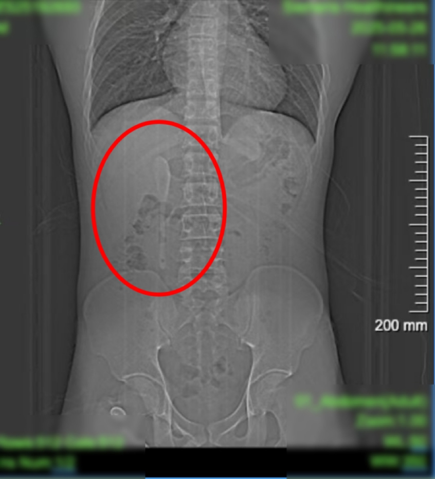 29岁的男子小言(化名),近期因外卖吃出塑料异物前往复旦大学附属中山医院急诊检查。谁知塑料没找到,竟意外发现腹中躺着一支近15厘米咖啡勺!CT显示这支近15厘米长勺状物体,严丝合缝地横亘于十二指肠球部与降部交界的生理狭窄处,稍有不慎即可能刺穿肠壁,引发腹膜炎或大出血。更离奇的是,身为严格自律的健身人士,小言对此毫无记忆,直至回溯半年前一场“梦境”般的经历……