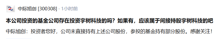 中际旭创:参投基金持有宇树科技部分股份中际旭创:参投基金持有宇树科技部分股份