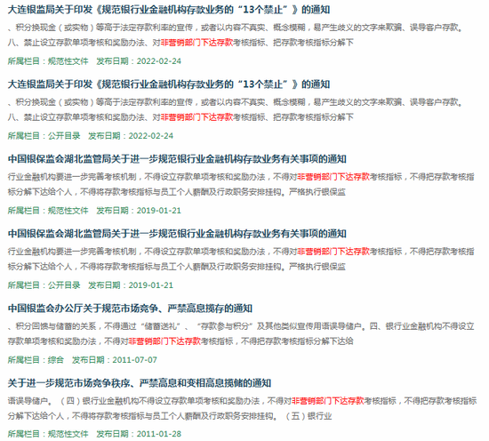 近年来,多地银监局在规范银行业存款业务的通知中,也纷纷强调禁止向非营销部门下达存款考核指标等要求,监管政策日趋严格。