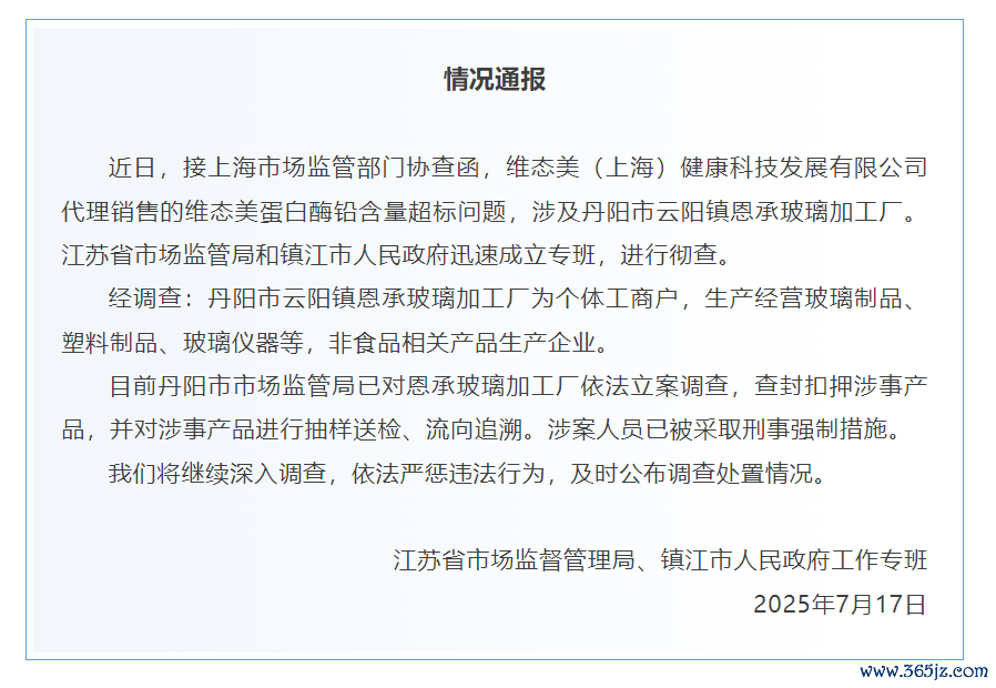 官方通报:丹阳市市场监管局已对恩承玻璃加工厂依法立案调查 涉案人员已被采取刑事强制措施官方通报:丹阳市市场监管局已对恩承玻璃加工厂依法立案调查 涉案人员已被采取刑事强制措施